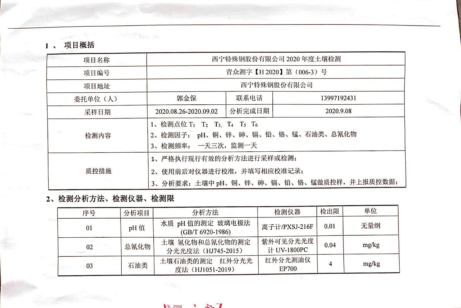 2020年土壤檢測報(bào)告